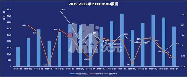 从2021年和2022年数据也不难看出,Keep的用户数据虽有增长,但增长依旧处于较平缓状态,且在个别季度还有倒退现象。
