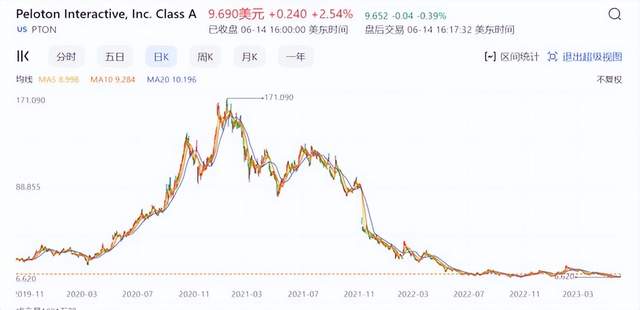 然而Peloton却因产品问题和业绩增长放缓等原因,股票不断暴跌,目前市值仅有34.34亿美元,相距高点,目前Peloton的市值已蒸发超400亿美元。
