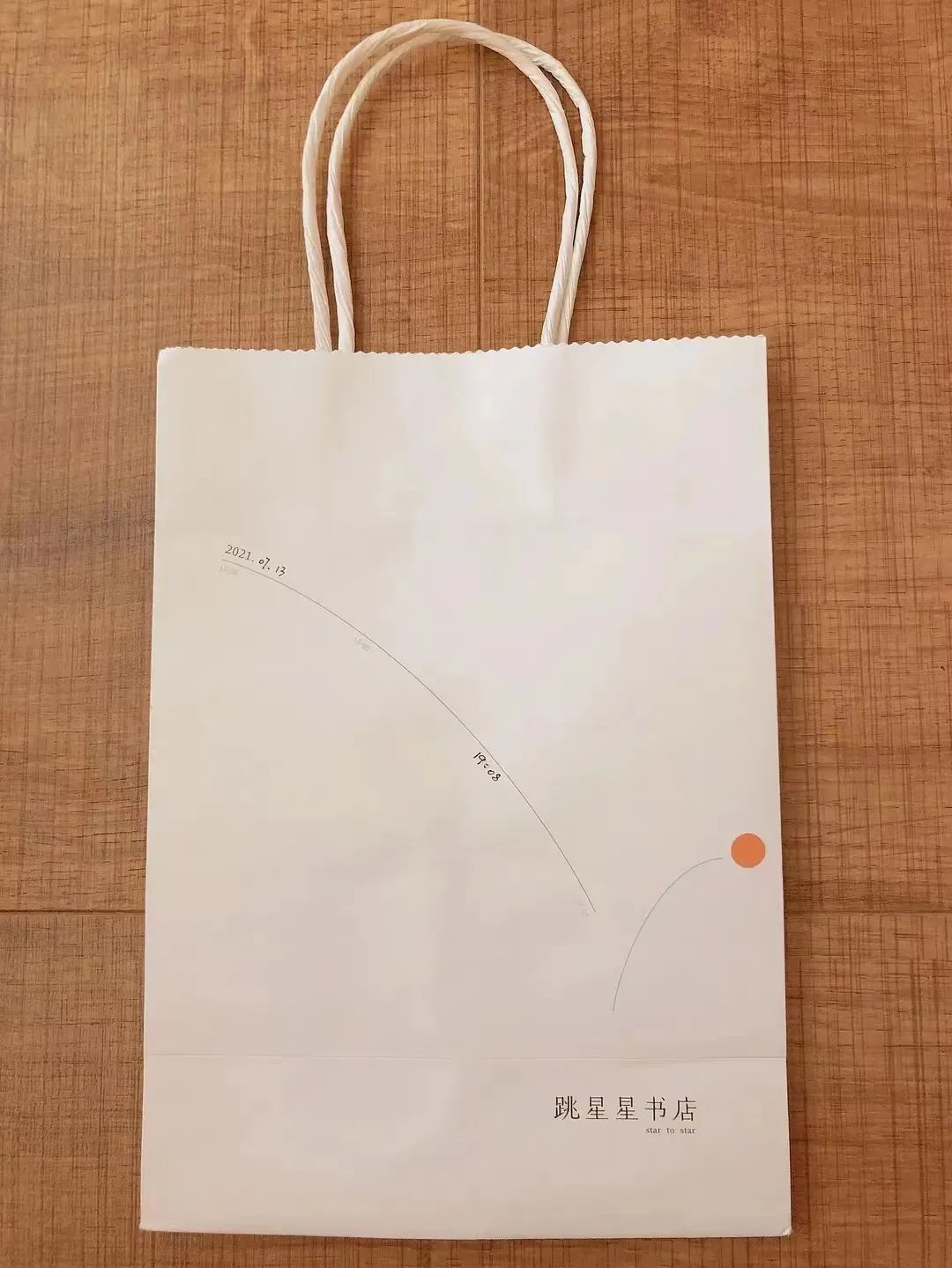 她在豆瓣上展示了一款跳星星书店的夏日限定纸袋,上面画的曲线是夏季营业时间也是太阳落山的时间线,橙色的小贴纸代表太阳,贴纸可以贴在任意处,代表每个人心中此刻太阳的位置。