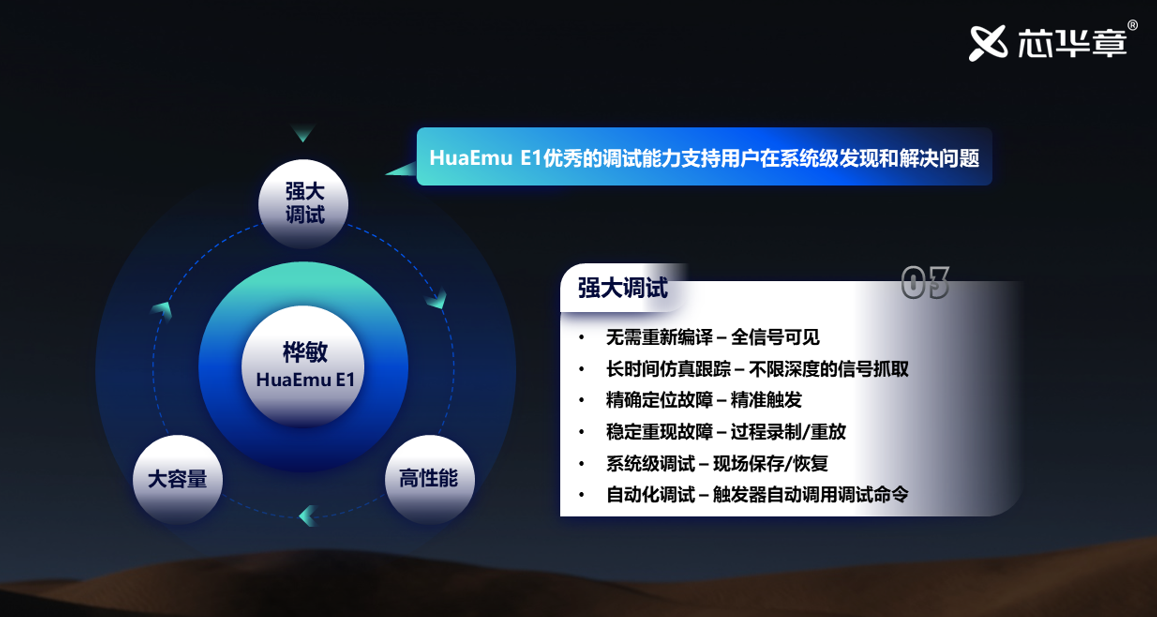 芯华章首席科学家林财钦博士表示,“我从90年代起就在做硬件仿真系统,它用了将近三十年时间不断发展成熟,是当前验证芯片、软件和系统完整功能最准确的方式。在HuaEmu E1的研发过程中,我们面向EDA 2.0目标,融入了多项自主研发的核心技术,实现了对传统硬件仿真器的继承和超越,打造了为系统验证和软件开发提供大容量、高性能、调试能力强的新—代硬件仿真产品。”