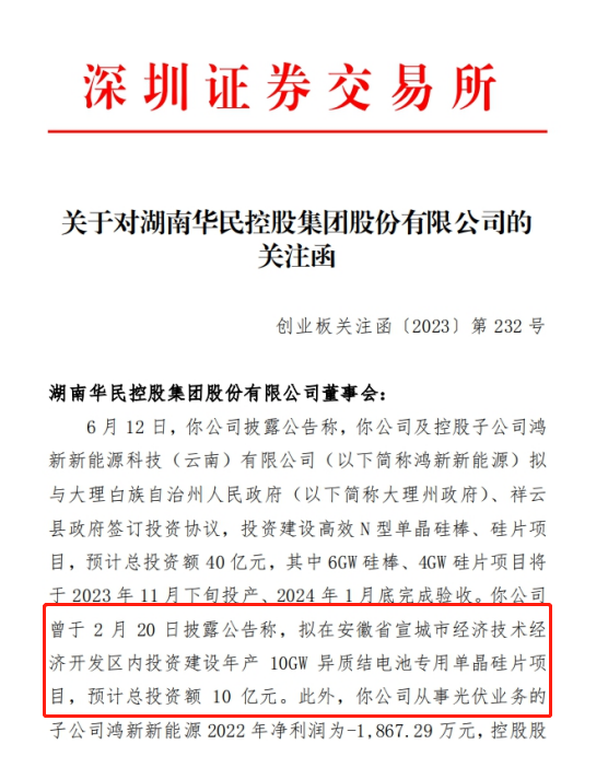 如今华民股份再次加码相关产能建设,引得深交所关注。