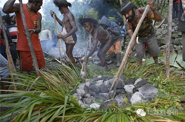 煮人肉的步骤与猪肉相同,用香蕉叶包住肉,放在石头上炙烤。