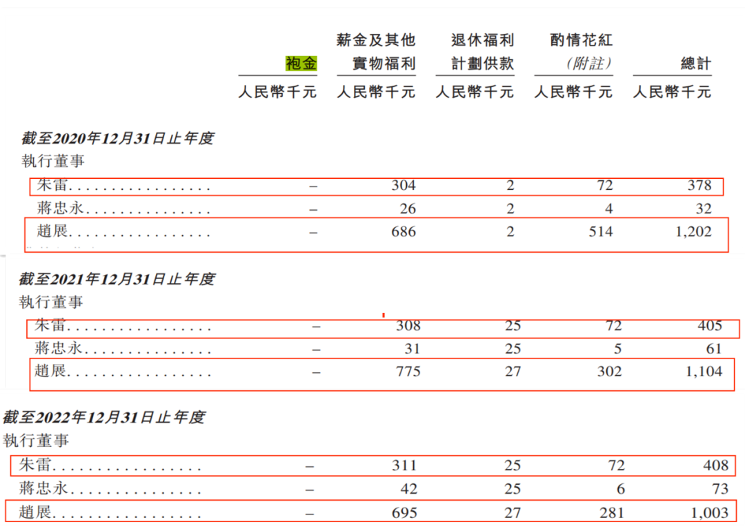 当然,赵展也从广联赛讯获得了公司最高的报酬。招股书显示,2020年-2022年,公司为其支付薪酬120.2万元、110.4万元、100.3万元。而同期,朱雷的薪酬也仅仅只有37.8万元、40.5万元、40.8万元。
