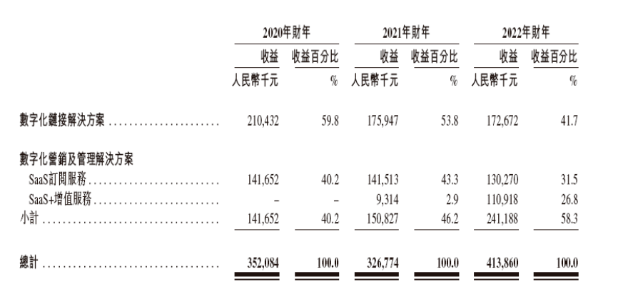 招股书介绍,广联科技目前推出了数字化链接解决方案、数字化营销及管理解决方案两大业务内容。其中,数字化营销及管理解决方案涵盖SaaS订阅服务及SaaS+增值服务。