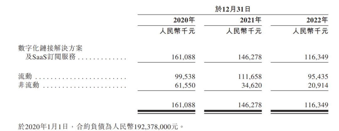 未来,这一下滑局面或将愈演愈烈。子弹财经注意到,企业数字化链接服务以及SaaS订阅服务的合约负债连年下滑,2022年时已经下滑至1.16亿元。
