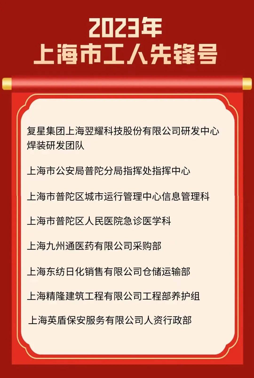 点赞!普陀区这些集体获得上海市工人先锋号!