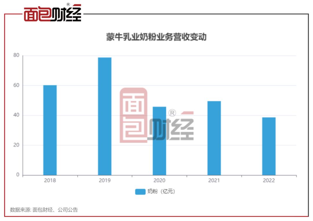 2022年,蒙牛乳业来自奶粉产品的收入为38.62亿元,同比下降逾两成;同期,伊利股份来自奶粉及奶制品的收入为262.6亿元。