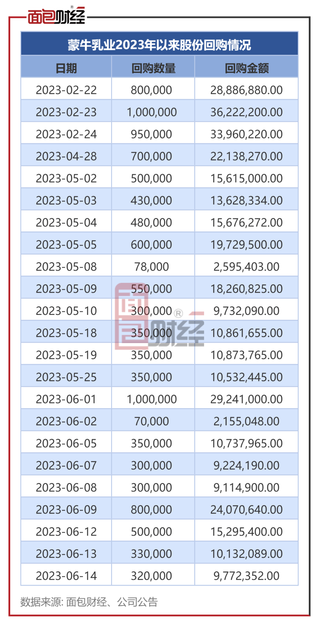 数据显示,截至2023年6月15日收盘,蒙牛乳业年内累计斥资逾3.68亿港元回购股份。