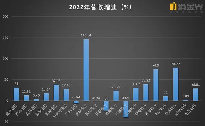 三湘银行、亿联银行、华瑞银行营收增速为负。