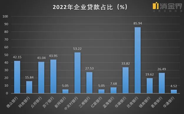 截至2022年,苏宁银行个人贷款占比51.7%,企业贷款占比43.95%,中关村银行个人贷款占比46.78%,企业贷款占比53.22%。