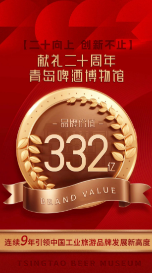 青岛啤酒博物馆品牌价值332.75亿元,品牌排名提升2名至第287位,连续9年以唯一入选的工业旅游品牌身份正式晋级中国品牌300强,引领行业发展新高度。