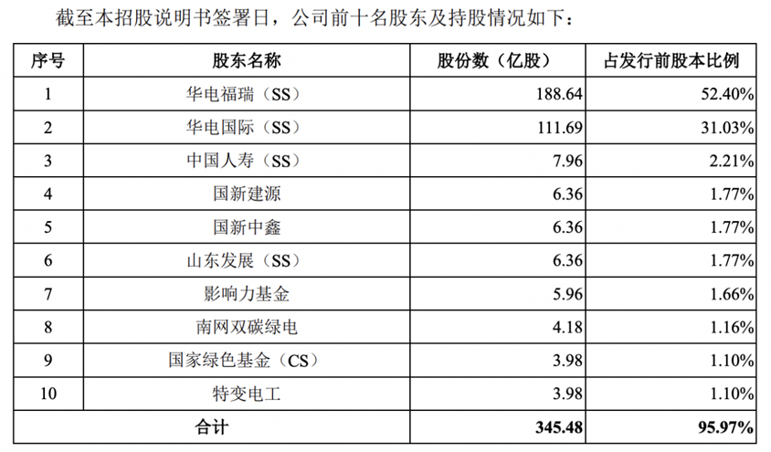 根据招股书,华电新能的直接控股股东为华电福瑞,实际控制人为中国华电。进一步来看,中国华电通过其全资子公司华电福瑞间接控制公司52.40%的股份,通过其控股的华电国际间接控制公司 31.03%的股份,合计控制公司 83.43% 的股份。