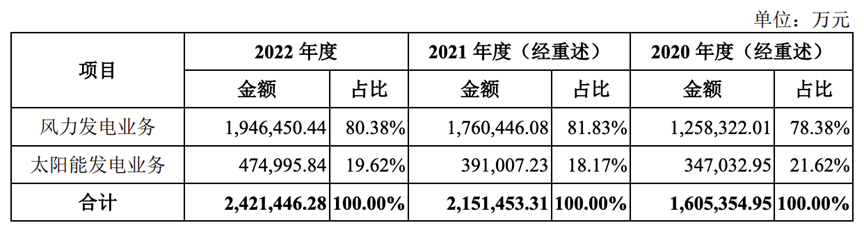 透过招股书,目前华电新能的主营业务为以风力发电、太阳能发电为主的新能源项目的开发、投资和运营,主要产品为电力输出。