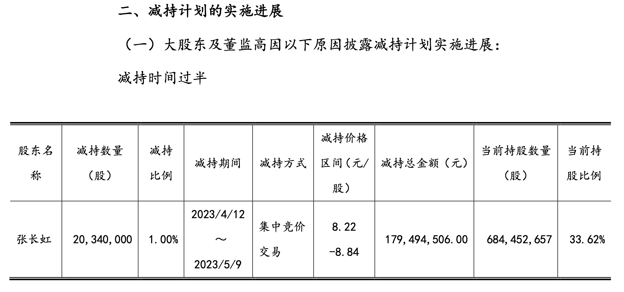 此次减持计划实施前,张长虹持有公司股票占总股本的34.62%。张长虹、张婷和张志宏三兄妹合计持有公司股票占总股本的41.31%。
