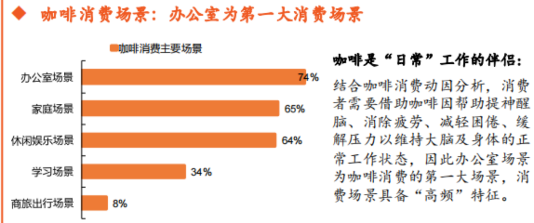 大家习惯在办公室、家庭场景和休闲娱乐场景点一杯咖啡,反而像是学习场景相对少一半。