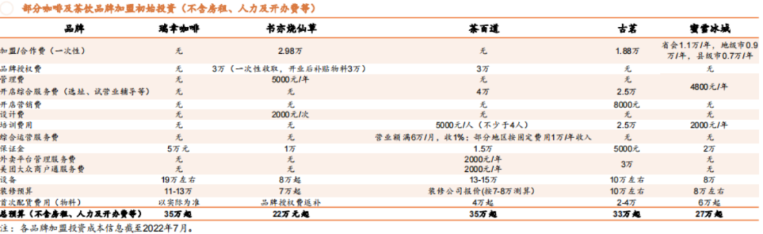 但像是中端和平价茶饮品牌基本上都是加盟模式,加盟商要自己承担开店成本,品牌方则需要抽成。