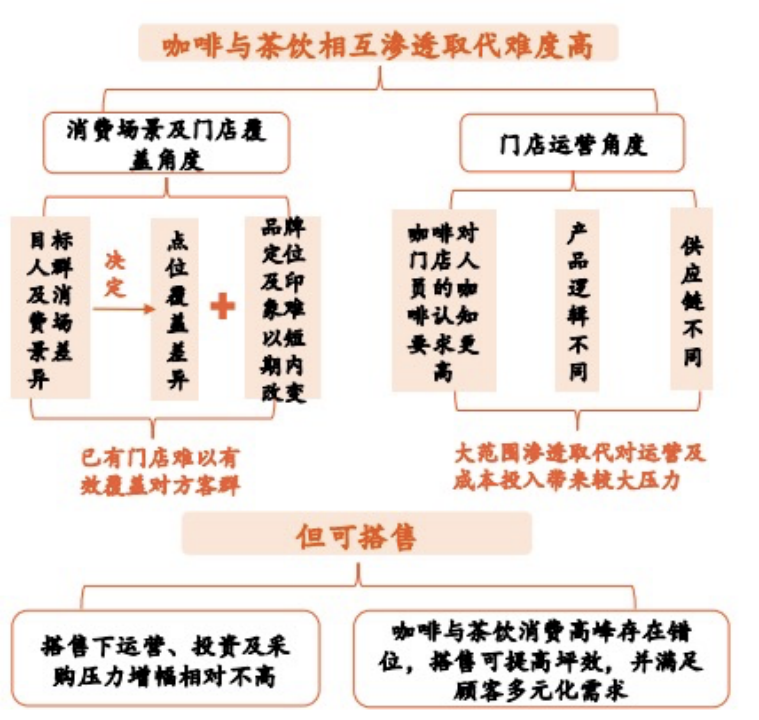 咖啡和茶饮间并不存在渗透的可能,只能作为搭售存在。