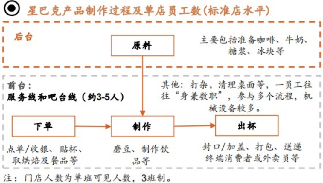 还有星巴克,店内3名至5名店员都安置在前台,负责下单、制作咖啡和出杯环节。