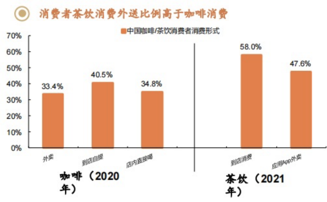 茶饮是休闲饮品,咖啡倾向于功能性饮品,这决定了咖啡比茶饮多了“到店自提”的销售渠道。