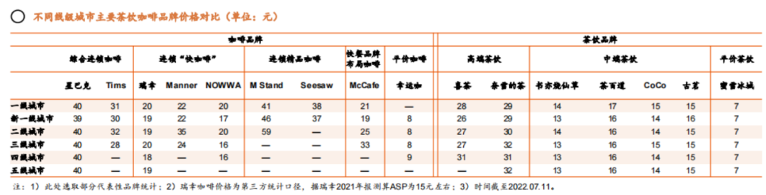 无论是茶饮还是咖啡,价格普遍是依据品牌定位而确定价格,而不是不同线级城市。