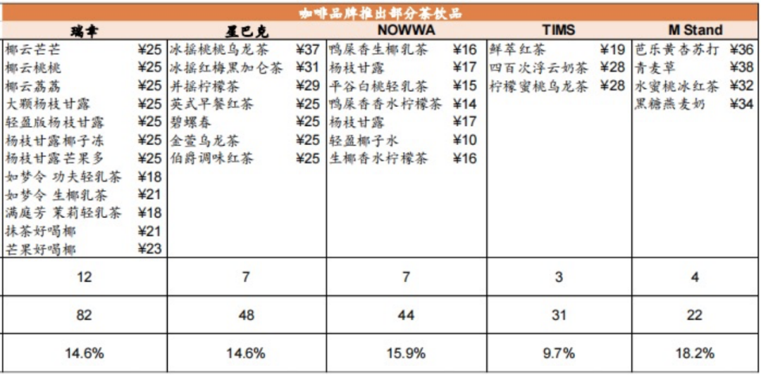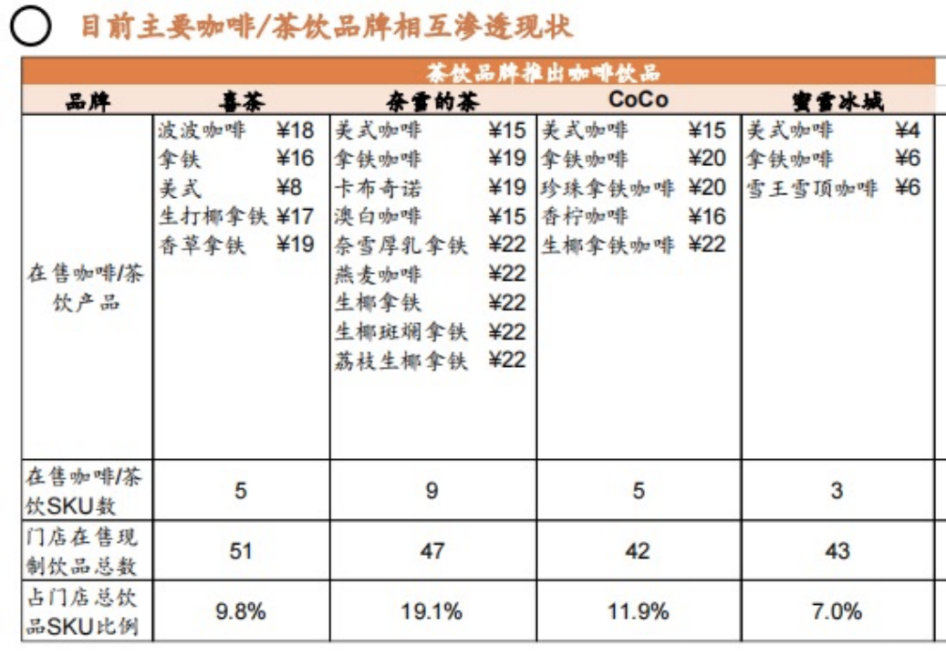 眼下,茶饮和咖啡对彼此只是少量渗透,没有太大影响,但SKU渗透率一旦增加,门店成本设备、供应链采购会是首当其冲的压力。