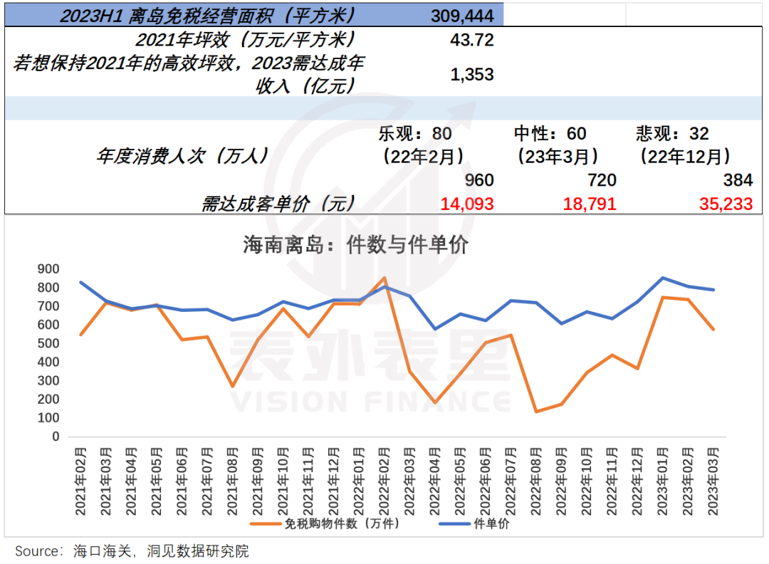 我们做了两个测算,如果中免想要以当下的经营面积维持2021年的高坪效,那么: