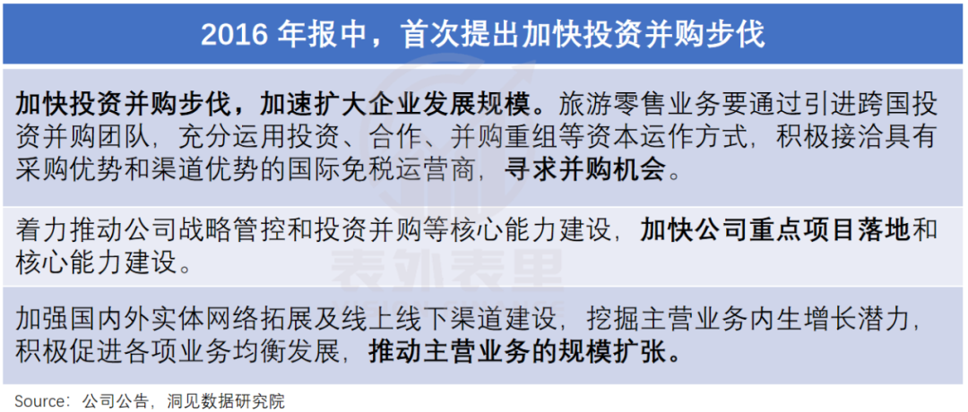 中免也想走这条路。可以看到,2017年其将加快投资并购写进年报,并由此开始持续扩张。