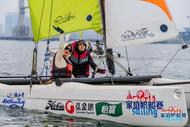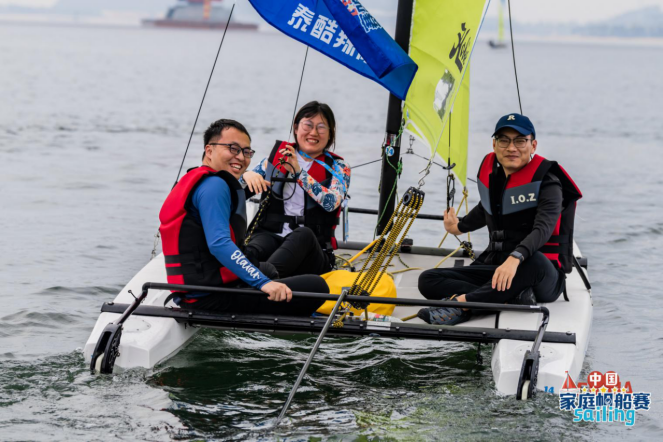 这次的参赛选手除了宁波当地的选手以外,更有来自山东、广州、上海等全国各地的选手们,家帆赛既是一场比赛,也是全家人的度假之旅。来自广州的珠江之友队有着丰富的家帆赛参赛经历,但也是首次参加中国家庭帆船赛梅山湾站,第一次来到这个美丽的蓝色海湾,何小军表示:“我们很喜欢水上运动,因为地表上百分之七十以上都是水,水上运动可以让我们去到更为广阔的地方。帆船运动又是智慧与经验的结合,可以让我们一直玩到老。这次是带邻家小孩来接触帆船运动,希望可以为她打开一片新的生活视界,而家帆赛对于参赛新人特别友好,同时适合全家人一起旅行,这个季节的宁波天气特别舒适,梅山湾水质也很好,所以我们就慕名参加了!”