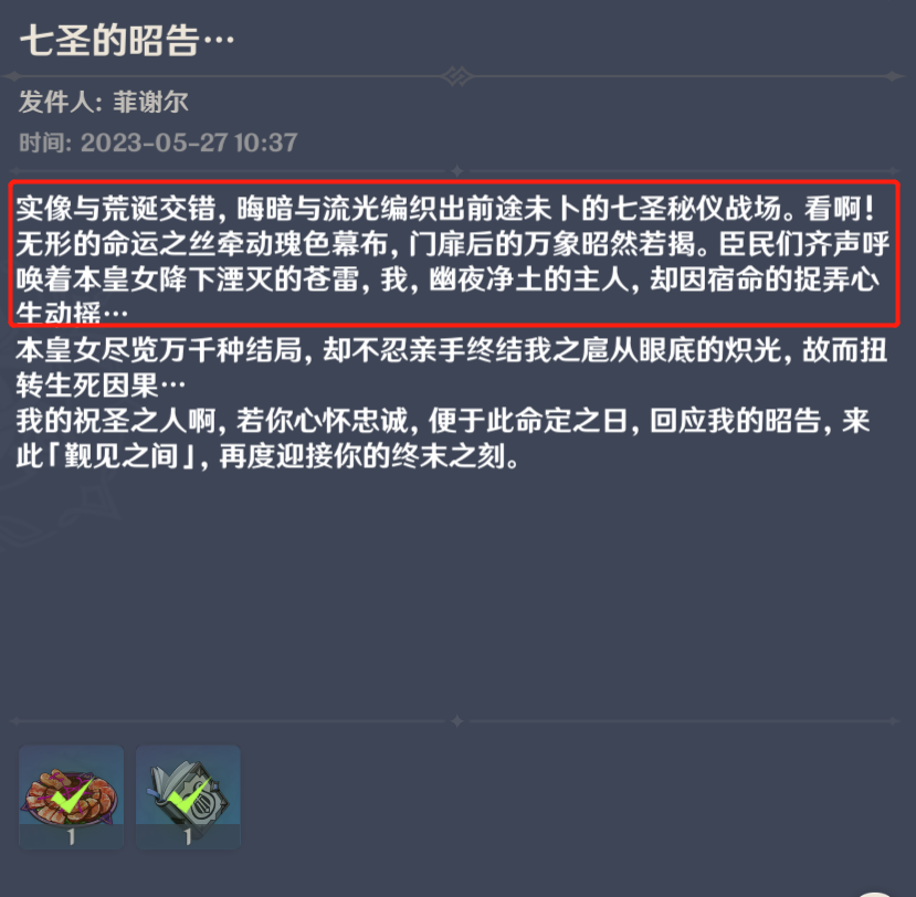 “米桑疯了吗?能不能别强行按头打牌?”玩家夏洛伊告诉预言家,她在拿到游戏内奖励后就再也没有玩过七圣召唤,而3.7版本的剧情围绕七圣召唤展开的做法,让她有种被按头的感觉,“剧情打牌就算了,菲谢尔过生日给我发邮件,打开一看居然又是七圣召唤小广告,米桑没有心啊,皇女一年就过一次生日,居然拿她的生日邮件来打广告。”