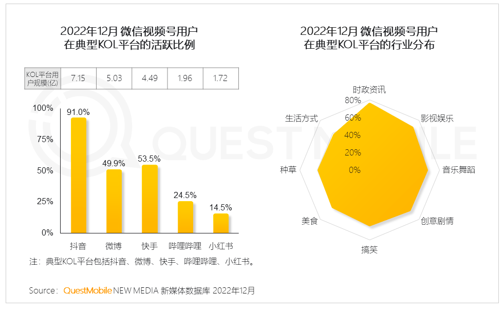 明面上,当下是视频号和抖音的短视频战争,因为视频号用户在典型KOL平台的活跃比例重合度最高的就是抖音,其次则是快手、微博、B站和小红书。但即便目前小红书和视频号的用户群体重叠度不高,但二者在直播电商上的竞争则是更长远的。