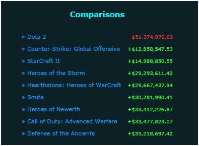 与其他电子竞技相比较,LOL总奖金数能排到全球第二位,虽然与第一位的DOTA2仍有不少距离。这是因为玩家群体定位不同,所以即使在采用相同的众筹方式仍不能取得较好的奖金累积,所以说“成也小学生,败也小学生。”除开DOTA2不谈,与其他游戏相比较,LOL仍是绰绰有余。