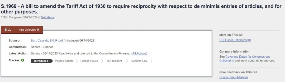 6月14日,根据路透社的报道,一个由两党组成的美国立法者团体已在北京时间6月15日提出一项法案,拟取消被电子商务卖家广泛用于从中国向美国购物者发送订单的关税豁免例外,目前该法案正式提交美国国会,接下来将会进入讨论与投票环节。