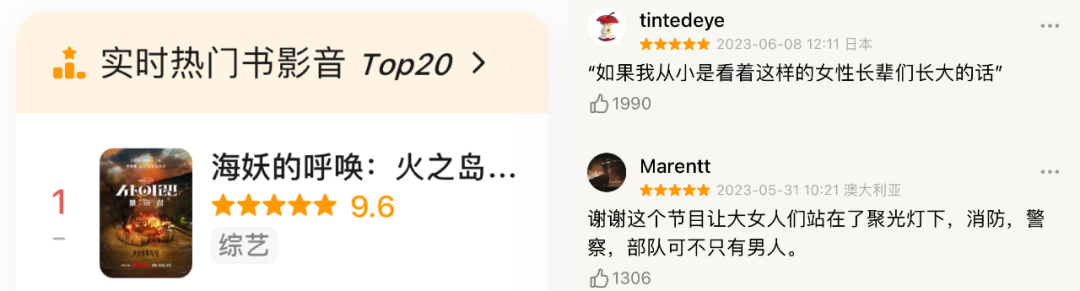 “如果我从小是看着这样的女性长辈们长大的话”、“看完想立刻冲进gym撸铁两小时”、“韩国女人你们简直蒂出next level”…… 豆瓣满屏五星好评,开分直接飙到9.6和登顶实时热门书影音,韩式全女综就像给该赛道投了一记“绝杀球”。