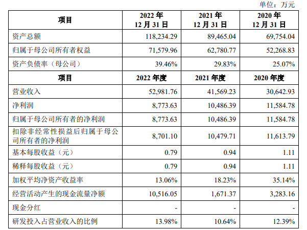 公司是一家从事疫苗产品研发、生产及销售的高新技术企业;公司冻干人用狂犬病疫苗(Vero细胞)已进入全国大部分省、自治区及直辖市的疫苗采购目录,是国内狂犬病疫苗的主要供应商之一。2020年、2021年及2022年公司分别实现营业收入3.06亿元、4.16亿元、5.3亿元;分别实现归母净利润1.16亿元、1.05亿元、8773.63万元。