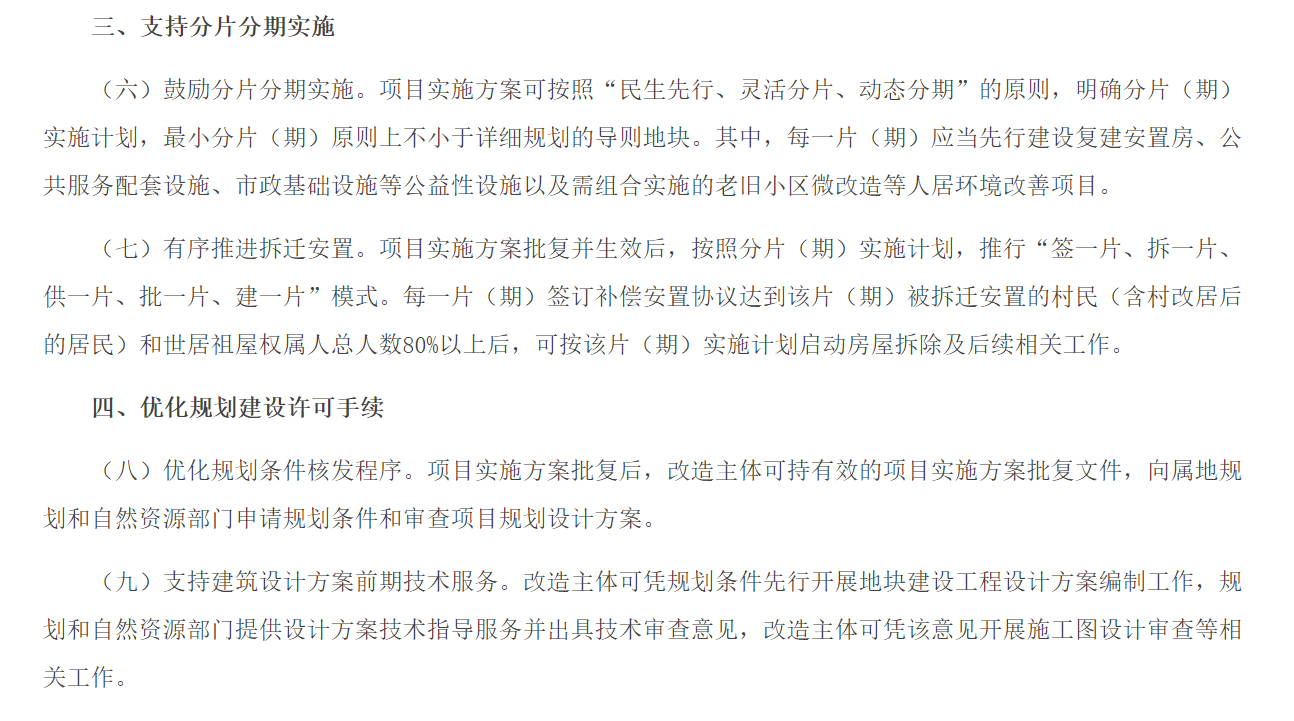 02.城中村改造有新规,鼓励分片分期实施,每片签约率达80%即可开拆