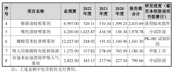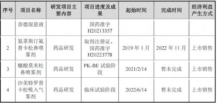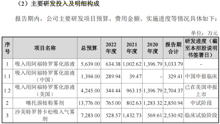 此外,在报告期研发费用项下主要研发项目明细构成中,也未见吸入用硫酸沙丁胺醇溶液项目及费用金额。