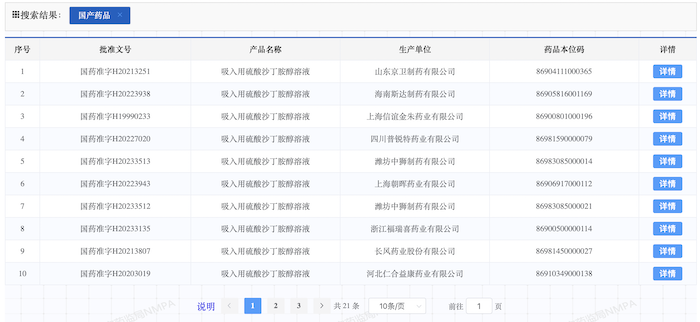 从市场空间及竞争情况看,2021年吸入用硫酸沙丁胺醇溶液全国销售额仅6.3亿元,且截至招股书签署日,国内已有包括原研厂商和中选第四批国家集采厂商在内的13家企业研发的吸入用硫酸沙丁胺醇溶液获批上市。界面新闻记者从国家药监局官网获悉,目前共21家厂商的吸入用硫酸沙丁胺醇溶液获批上市。