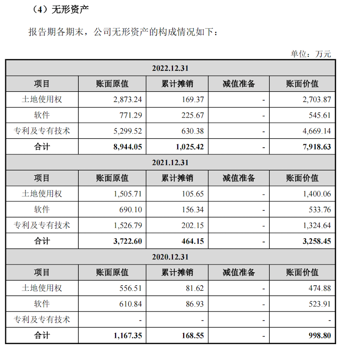 不仅如此,报告期各期末,公司无形资产账面价值分别为998.80万元、3258.45万元和7918.63万元,主要为土地使用权和专利及专有技术。公司表示:报告期内与研发相关的无形资产主要系吸入用布地奈德混悬液和氮䓬斯汀氟替卡松鼻喷雾剂形成的专利及专有技术,上述无形资产按照药品批准文号的有效期5年进行摊销。