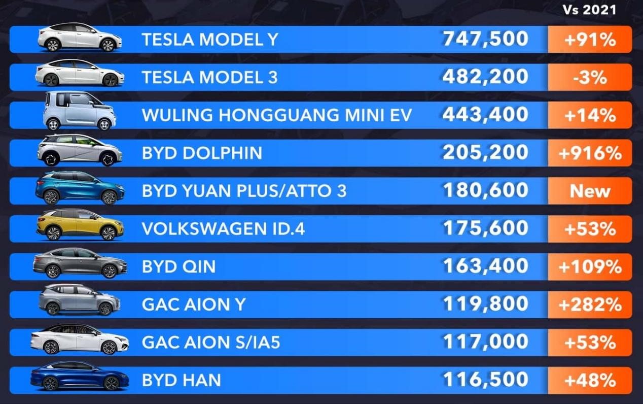 对于转型不久的大众集团来讲,这份成绩单可以说可圈可点,不过,对比步伐更快的比亚迪、特斯拉来讲,这还远远不够。根据海外知名车媒Motor1公布的2022年全球纯电动汽车销量排名榜单,比亚迪、特斯拉均有多款车型上榜,而大众仅有一款大众ID.4。