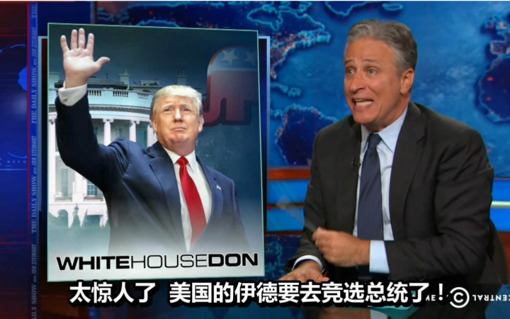 1. 于是我们第一个要介绍的,就是蝉联2003到2011年连续九届艾美奖最佳综艺类节目、中国观众最熟悉的《囧司徒每日秀》(DailyShow with Jon Stewart)!虽然已于去年停播了……但毕竟赶上了川普宣布参选的时刻,还是能算进来的!