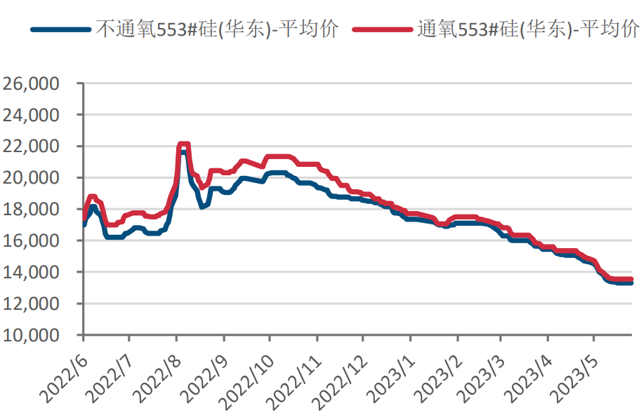 工业硅 553#价格走势(元/吨);数据来源:SMM
