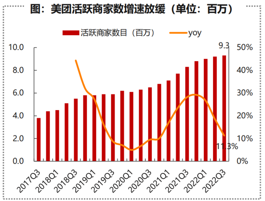 从供给侧来看,虽然美团到店业务已覆盖所有一、二线商户,且流量最大,但商家拓展增速已经放缓。并且头部商家多为连锁品牌,私域流量强,目前中小商家与美团合作紧密,包括广告、团购、配送等深度合作。