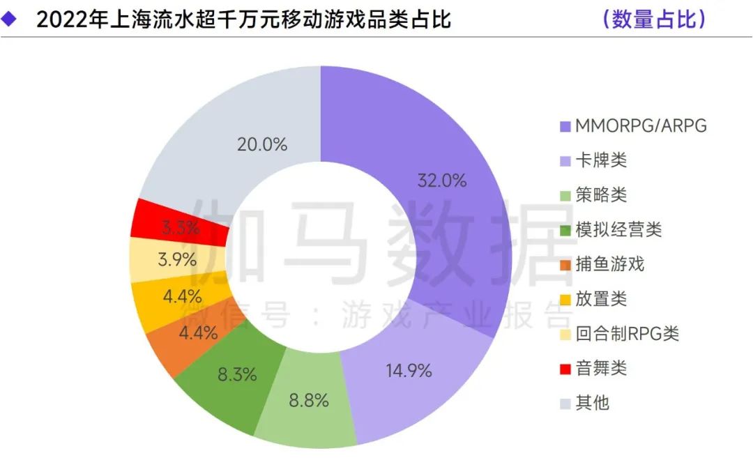 在与其他地区头部产品的竞争中,上海在MMORPG/ARPG、卡牌类、塔防类赛道的优势已较为成熟,MMORPG/ARPG、卡牌类产品连续2年位于上海流水超千万元产品的数量TOP2。