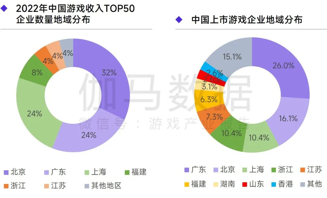 2022年中国游戏收入TOP50企业上海占24%