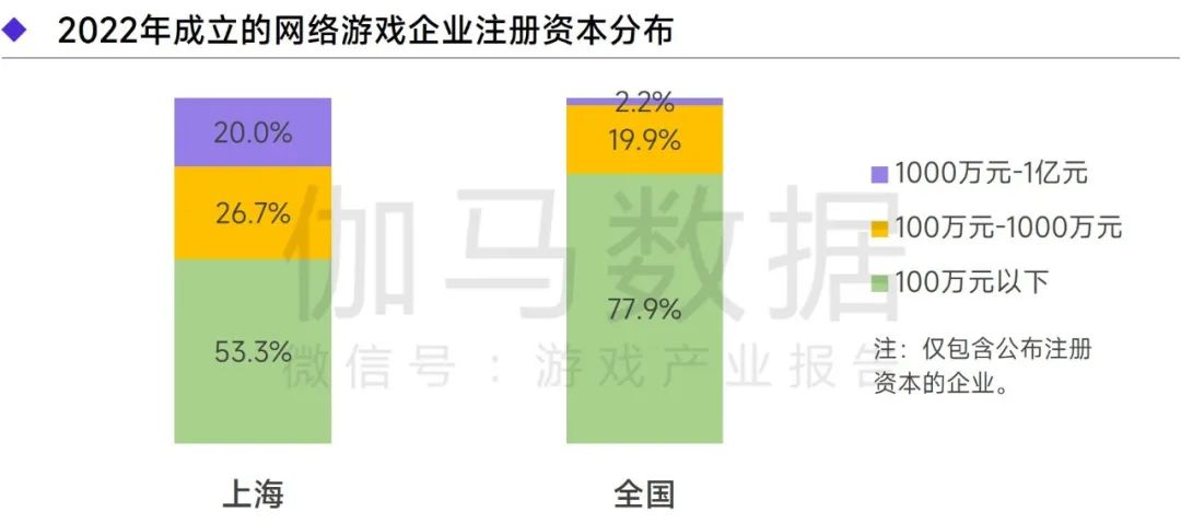 2022年成立且公布注册资本的上海网络游戏企业中,46.7%注册资本超百万元,高于全国24.6个百分点。
