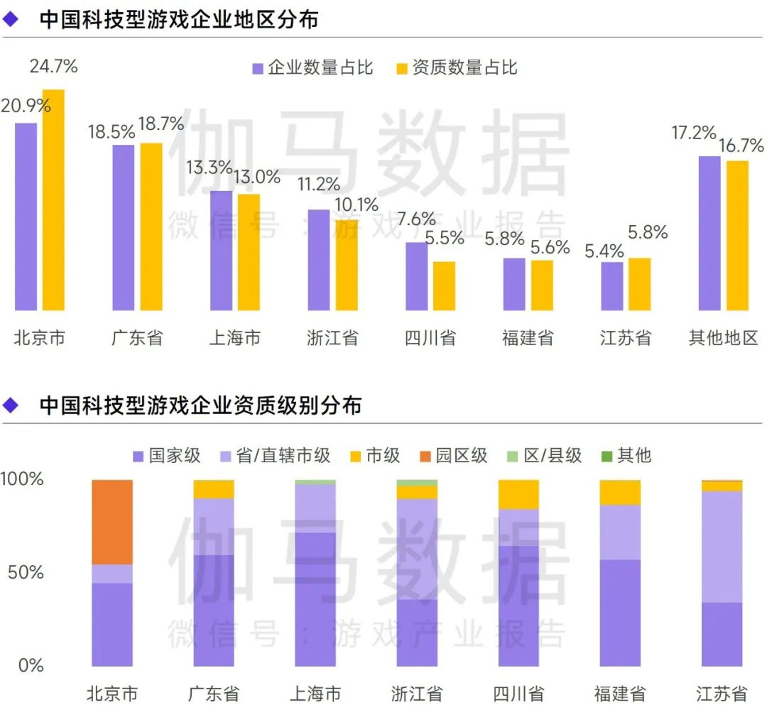 注:科技型游戏企业指截至2023年4月30日,以下资质认定中至少1项处于有效期内的游戏企业,下同:高新技术企业、科技型中小企业、创新型中小企业、雏鹰企业、中关村高新技术企业、“专精特新”中小企业、科技小巨人企业、技术先进型服务企业、瞪羚企业、民营科技企业、众创空间、企业技术中心、专精特新“小巨人”企业、独角兽企业、工程技术研究中心、科技企业孵化器、技术创新示范企业。