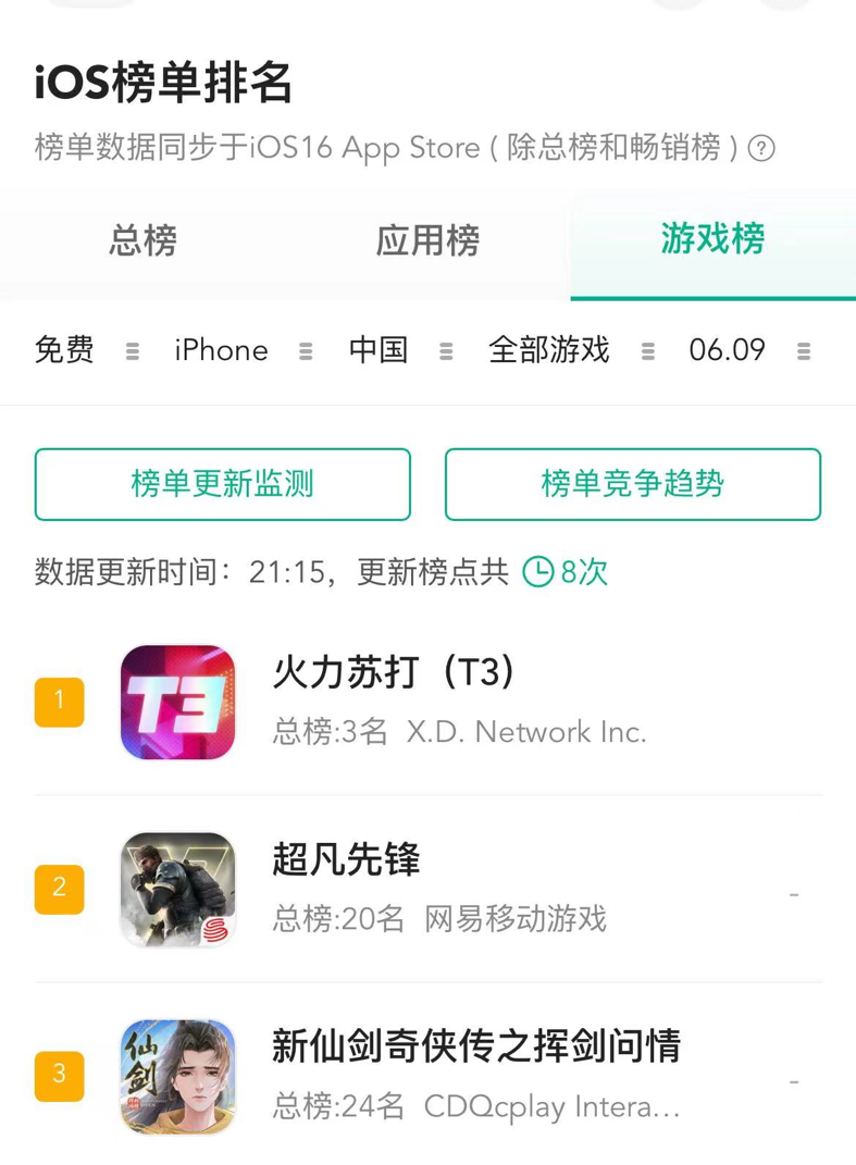 6月9日,心动研发近四年的《火力苏打》(原名《T3》)正式公测上线,成绩还算不错,曾在iOS免费榜首霸占4天,畅销榜则冲进40名。