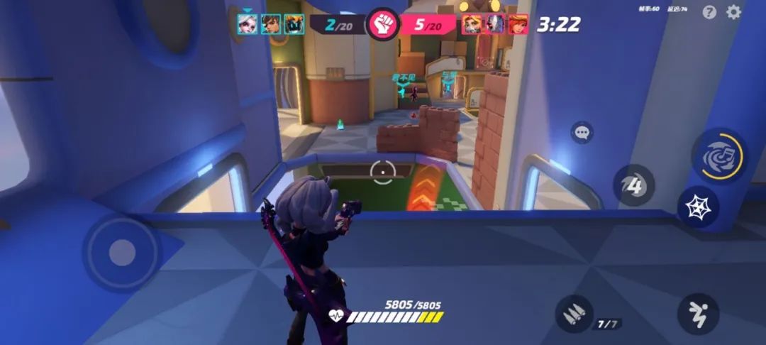 游戏整体主打轻量休闲竞技。瞄准全球市场,游戏角色为美式卡通画风,场景以明亮色块简单建模铺就。相对PC端,地图更小,在自动射击+5分钟限时竞技的设定下,击杀对手得分,率先获得20分即可获胜,整体游戏体验非常爽快。