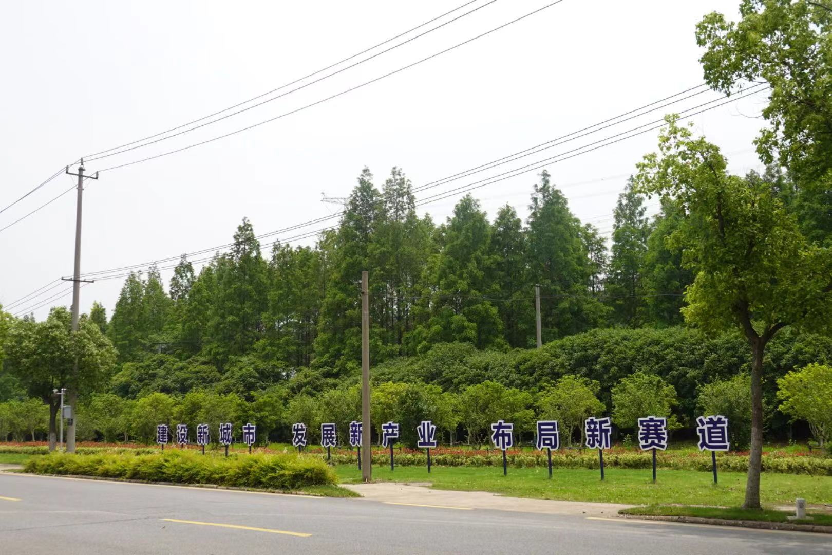 沿一条狭长的双向车道公路行至中段,对面是“建设新城市,发展新产业,布局新赛道”的标语牌与呼啸而过的高铁,在两排的行道树隔断处就是陆家镇单体建筑面积最大的科创产业园——普洛斯华成(昆山)智能制造科技产业园。
