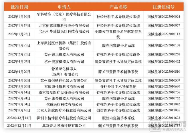 2022年国内获批上市的手术机器人,数据源于动脉橙